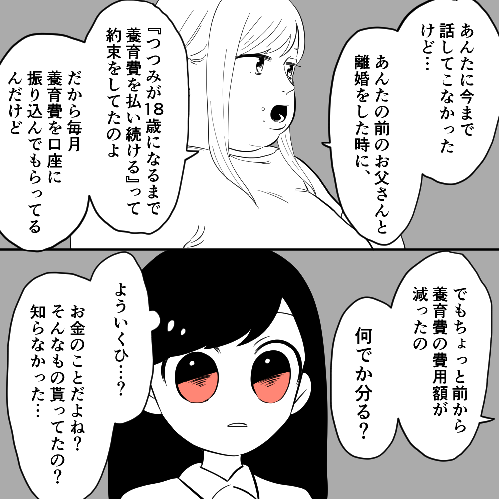 母から「お金がなくなった」と切り出され、ここでようやく父から養育費を貰っていたことを知りました。